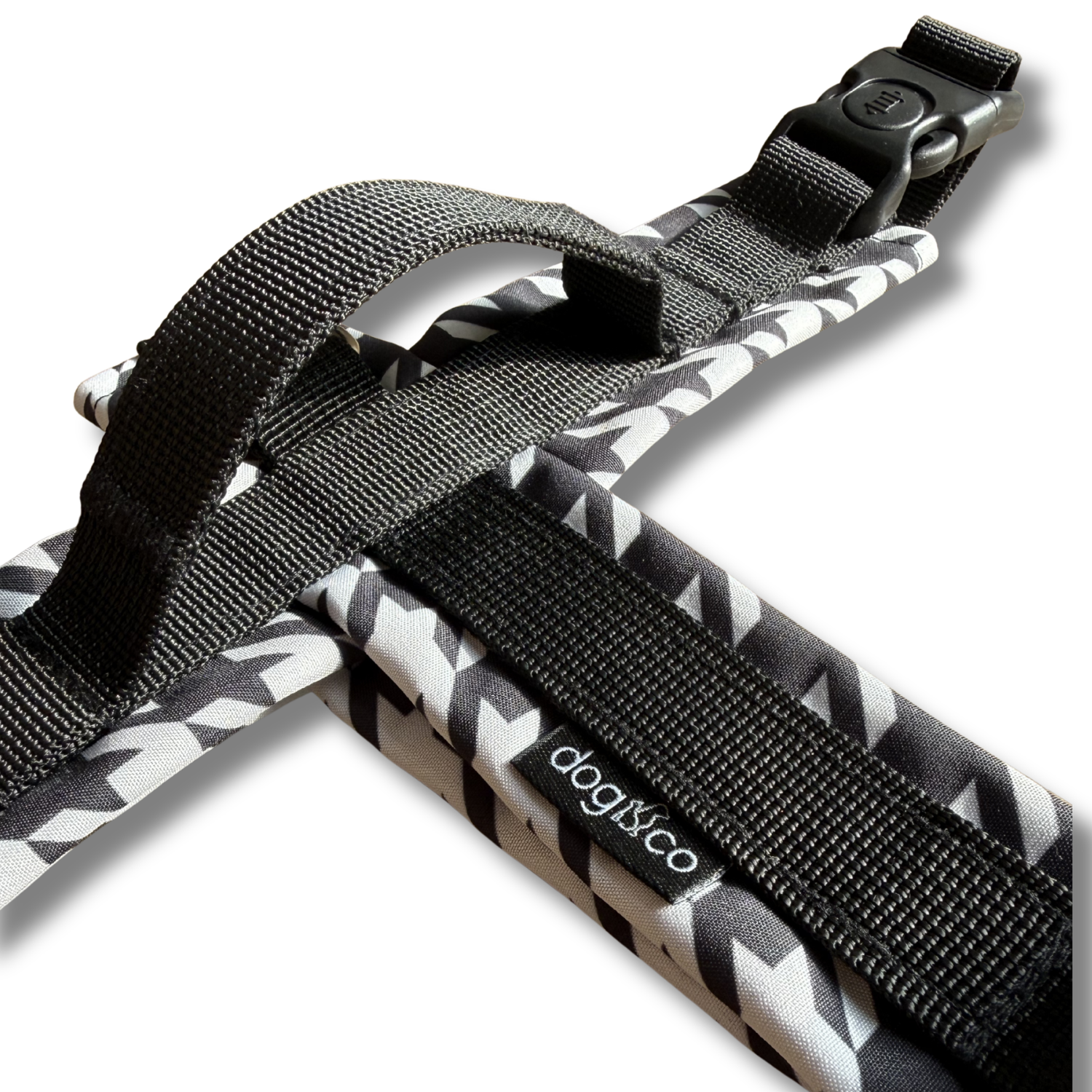 Na pasie obwodu klatki piersiowej znajduje się praktyczny uchwyt, który pozwala szybko przytrzymać psa w sytuacji wymagającej większej kontroli. - Regulacja dopasowana do psa